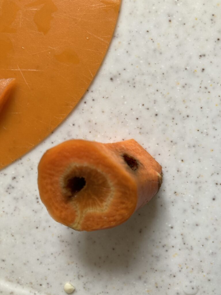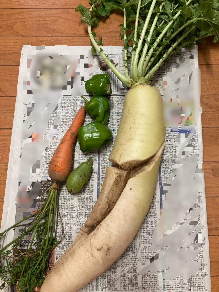 もらった大根や人参にも、虫食いやひび割れが。