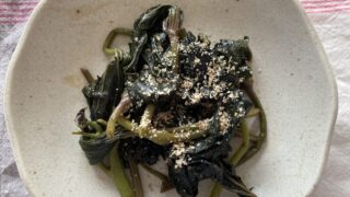 家庭菜園で収穫したさつまいもの葉を使ったきんぴらレシピと、自然と共に生きる“いただく”という心について綴っています。