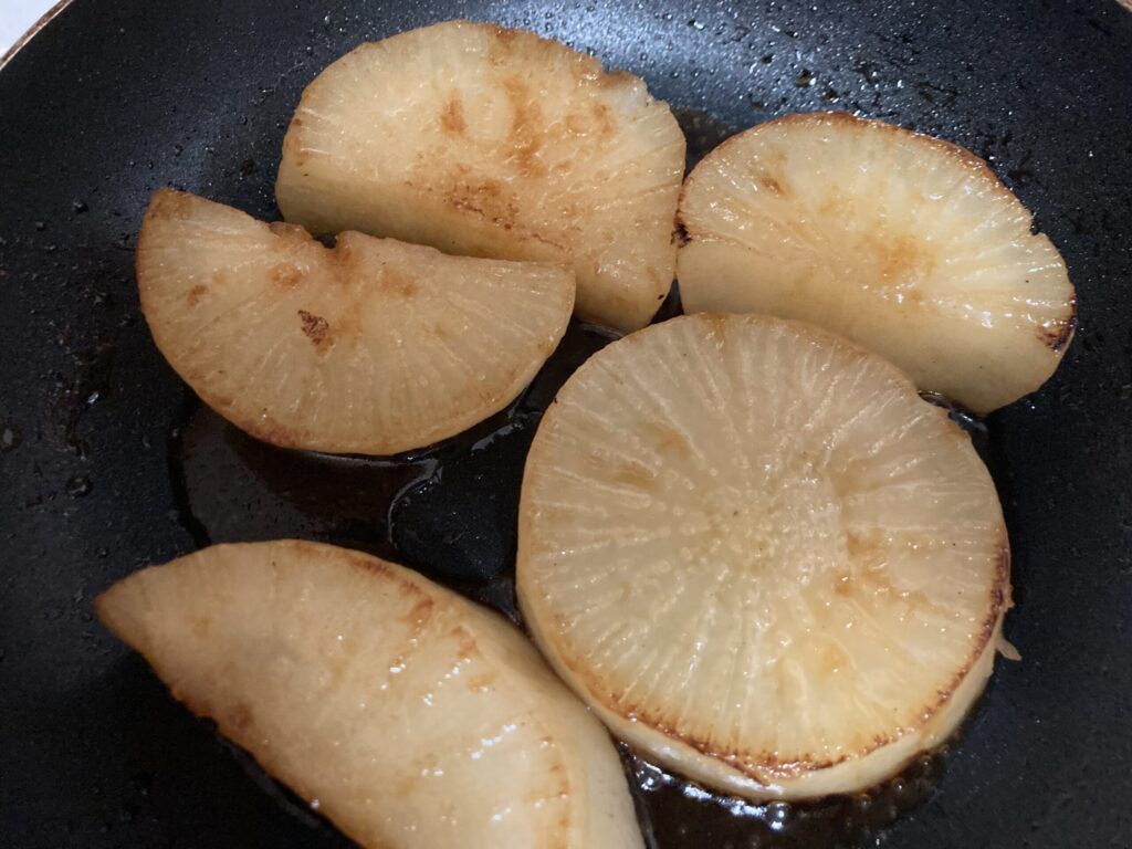 いただいた大根は、シンプルに大根ステーキにしました。